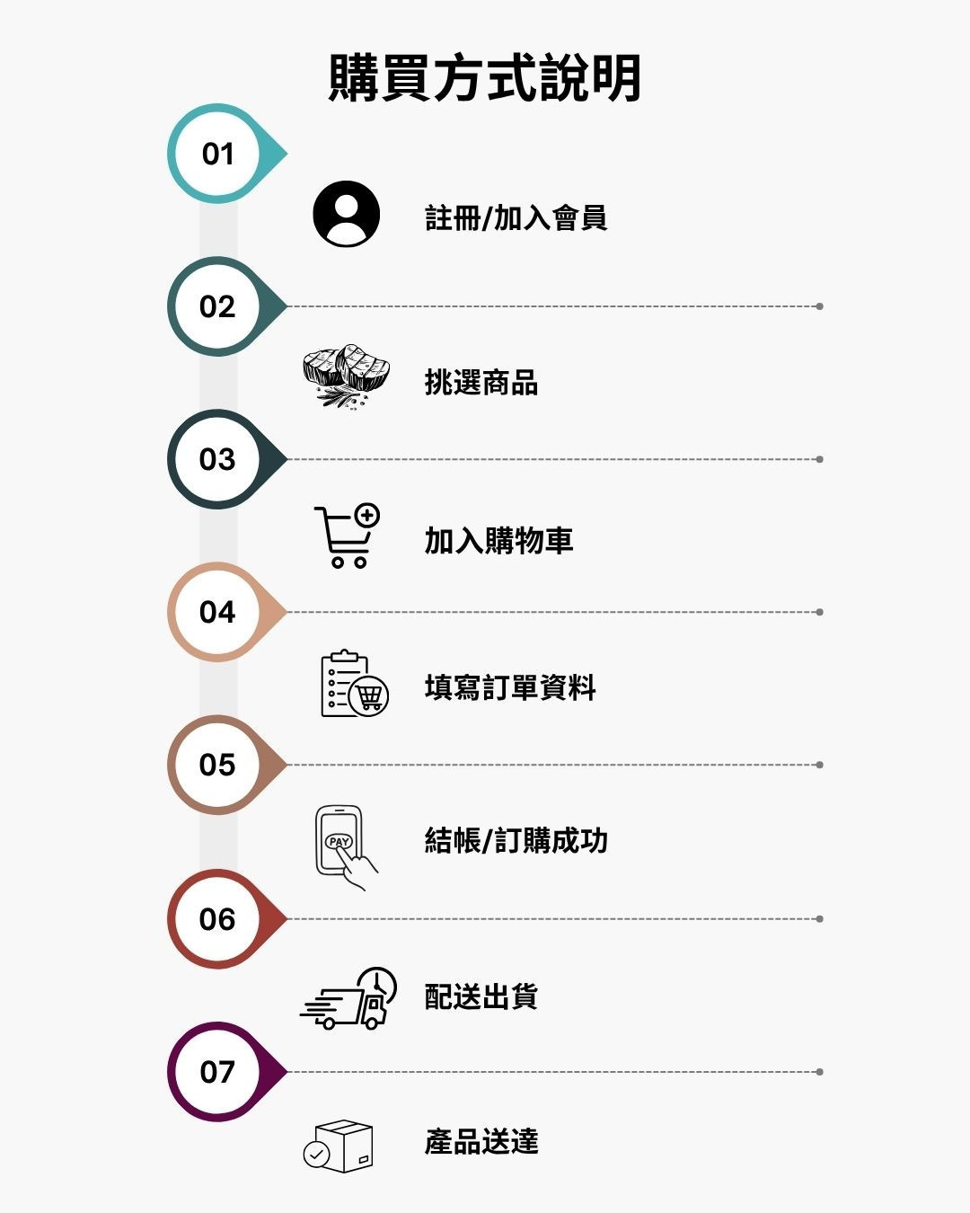 為完成訂單配送,本網站將提供必要之姓名、地址、電話等資料予合作之物流商。